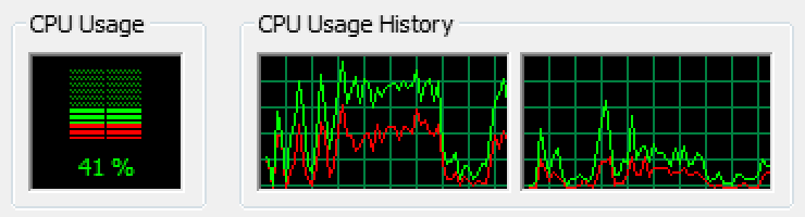 It's possible to enable display of Kernel time in Task Manager, as I have in the above screenshot. The green line is total CPU time; the red line is Kernel time. The gap between the two is User time.