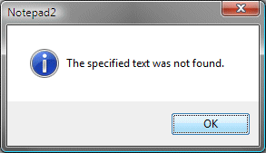 Although I like Notepad2, it has some pathological alert dialog behavior, particularly when it comes to searching. Here's an alert dialog I almost always get when searching a document: