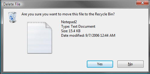 The canonical example of unnecessary dialogs, the delete confirmation dialog, lives on in Windows Vista:
