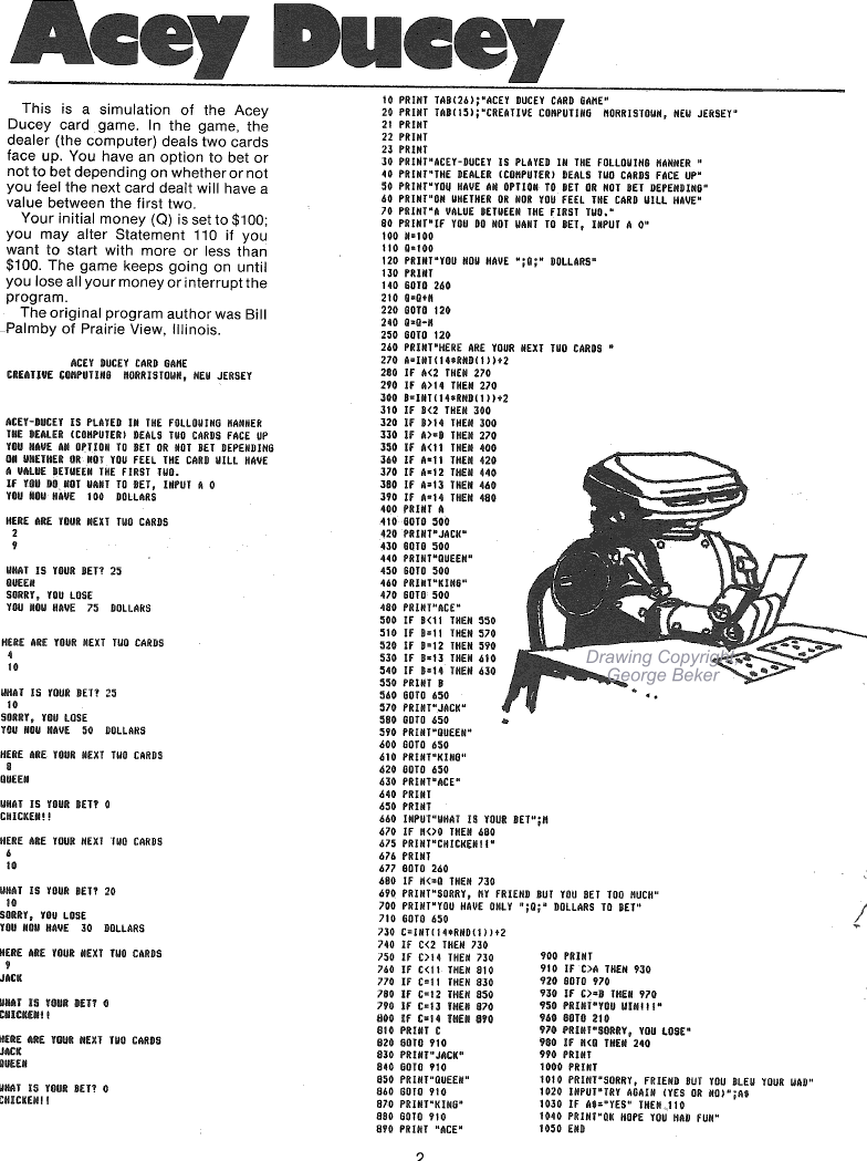 Now, bear in mind these are very primitive games from the 1970s. They aren’t going to win any awards for gameplay, or programming sophistication. But they are precious artifacts of early computing that deserve to be preserved for future generations, including the wonderful original art by George Beker.