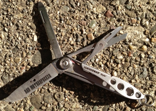 So: scissors, knife, screwdriver. Hard to see, but detachable tweezers are also wedged in on the corner. That works for me. These are the functions I used the most on my Leatherman Squirt, by far. The Style is leaner, smaller, lighter… meaner.