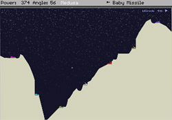I remember playing the hell out of Scorched Earth in college. There's nothing quite as satisfying as nailing your opponent with the laughably ineffective "Funky Bomb". Between this, Civilization, and Lemmings, it's a wonder we got anything done at all!