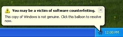 Microsoft has finally activated the most aggressive part of their Windows Genuine Advantage program – active notifications.